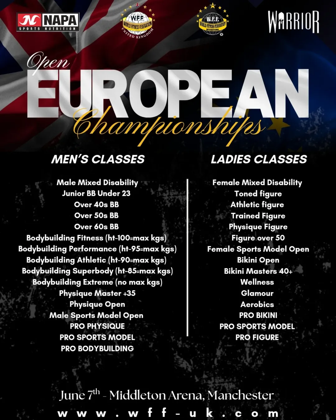 An active World Fitness Federation UK membership is required before entering the show, so please make sure you have purchased your WFF UK membership before registering